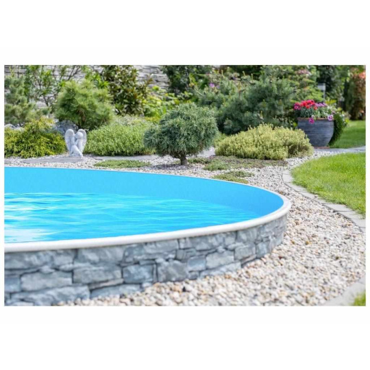 Bazénová fólie Blue pro bazény s plechovou stěnou o průměru 3,6 m a hloubce až 1,2 m. Fólie je vhodná jak pro nové bazény, tak i na výměnu do již postavených bazénů. Jedná se o kvalitní fólii odolnou vůči oděru a bazénové chemii.