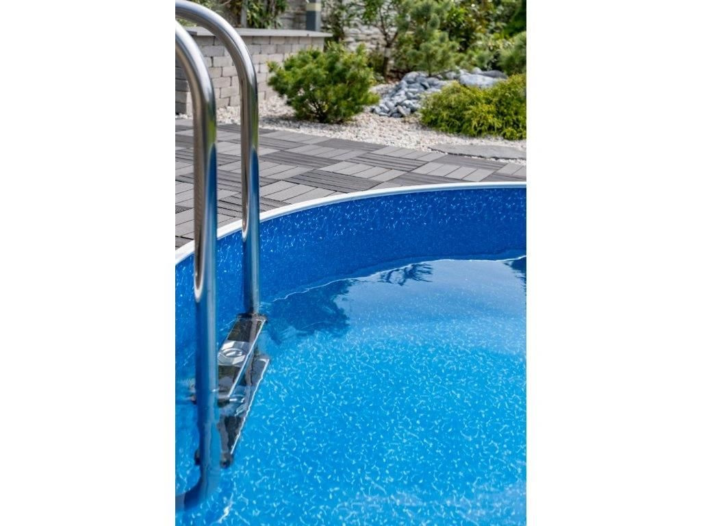 Bazénová fólie Waves pro bazény s plechovou stěnou o rozměru 7,3 m x 3,7 m a hloubce až 1,2 m. Fólie je vhodná jak pro nové bazény, tak i na výměnu do již postavených bazénů.