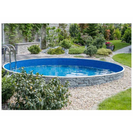 Bazénová fólie Waves pro bazény s plechovou stěnou o průměru 5,5 m a hloubce až 1,2 m. Fólie je vhodná jak pro nové bazény, tak i na výměnu do již postavených bazénů.