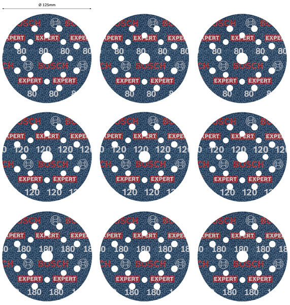 Bosch 9dílná sada brusných kotoučů EXPERT O780 s fólií, 125 mm, G80 (3×); G120 (3×); G180 (3×)