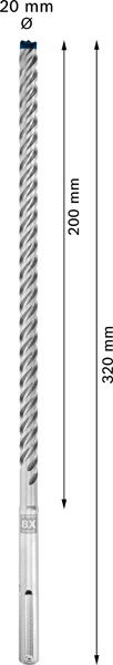 Vydrží až 3× déle než vrták Bosch SDS max-4 - Vrtání do železobetonu je náročná práce a tradičně si na vrtácích do kladiv vybírá svou daň. Dokonce i vrtáky se čtyřmi břity se rychle opotřebovávají. Kvůli výměně a dodávkám příslušenství tak vznikají prostoje. Celokarbidová hlava vrtáku EXPERT SDS max-8X je pokročilá konstrukce se 4 břity vyrobená z jednoho kusu toho nejtvrdšího kovu: Nezasekává se a do materiálu vrtá s chutí. Díky technologii Bosch Carbide Technology a celokarbidové hlavě vydrží vrták EXPERT SDS max-8X mnohem déle než běžné vrtáky do kladiv. Efektivně proráží výztuž v železobetonu, takže narazíte-li na ocel, není třeba zastavovat, znovu cílit ani měnit vrtáky. Stavebním profesionálům, kteří pravidelně vrtají do betonu a železobetonu, například kvůli instalaci kotev pro velké zatížení nebo kvůli nastavení výztuže, nabízí vrták Bosch EXPERT SDS max-8X do kladiv bezkonkurenční výkon, spolehlivost a dlouhou životnost. Jedná se o příslušenství EXPERT pro vrtací kladiva SDS max. Kompatibilní se všemi vrtacími kladivy SDS max.