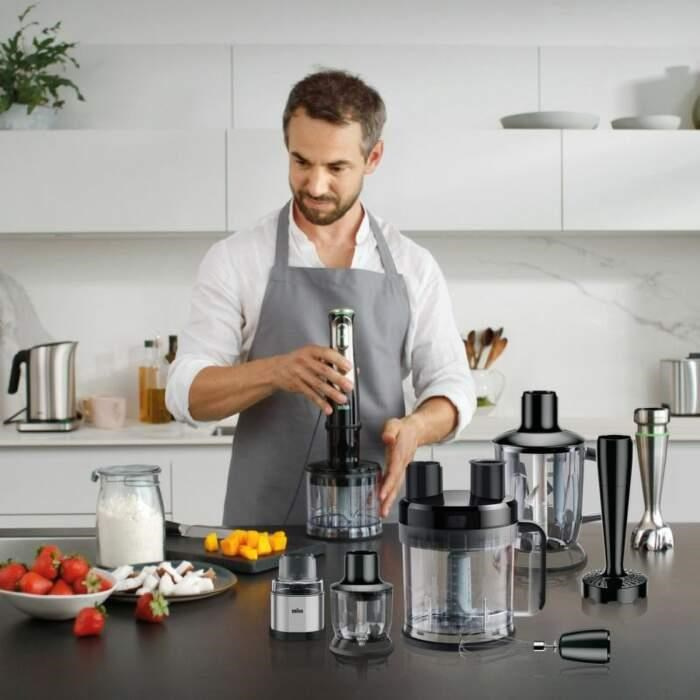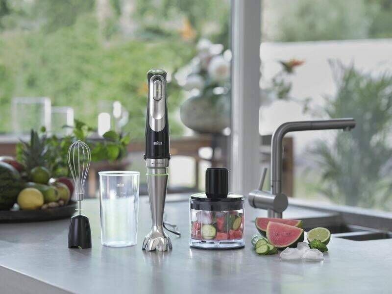 Tyčový mixér Braun MQ 9135BK MultiQuick 9 dokáže díky technologiím ActiveBlade a PowerBell vytvořit nejjemnější kulinářské výtvory. Se 3 režimy rychlostí iMode a technologií proti frkání surovin SplashControl zvládne v kuchyni téměř vše.