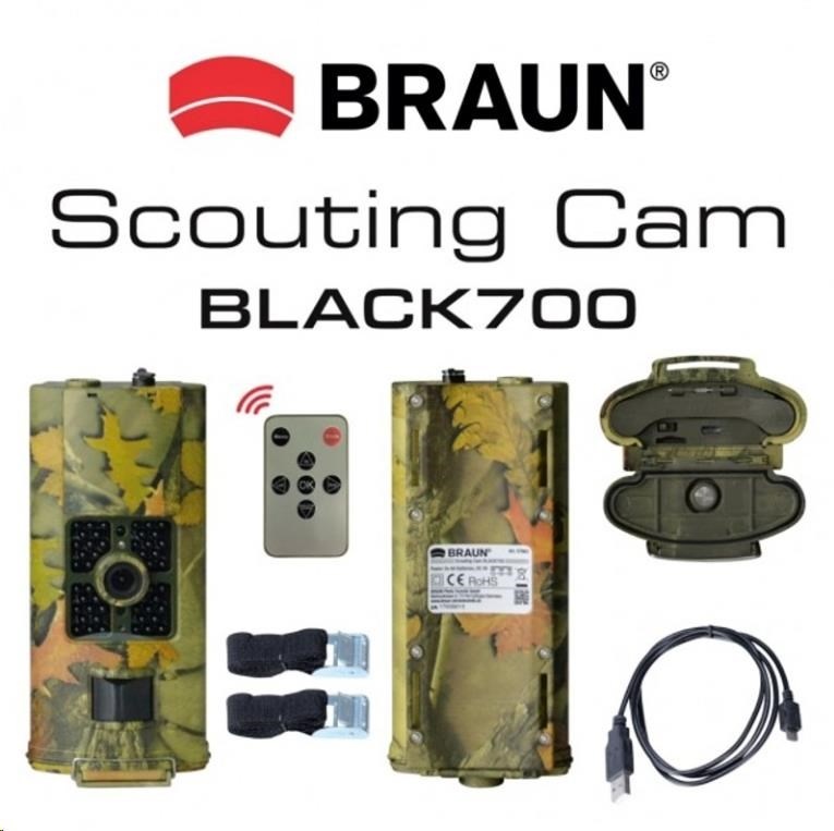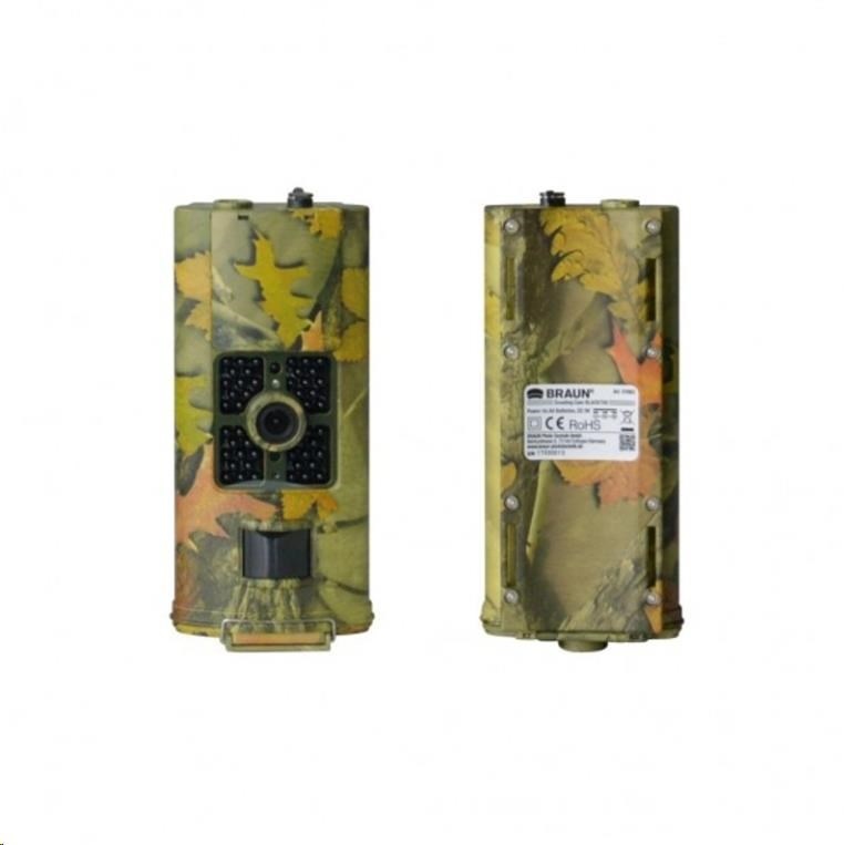 Digitální sledovací fotopast s detekcí pohybu nebo nastavením TimeLapse, záznam 1-9 foto JPEG 16 MP nebo FullHD video AVI 1080p vč. audio, 90°/1,8 objektiv, PIR senzor s úhlem 120° / 20m dosah / 0,5s prodleva, 48 Black IR LED 940nm až do 25m. 5Mpx čip pro barevné denní záběry a černobílé v noci. Outdoor přístroj s vnějším 2" LCD pod krytem a dálkovým ovládáním, voděodolný dle IP54, záznam datumu/ času/ fáze měsíce, maskované provedení na zavěšení v přírodě - velmi tenký moderní design, barva camouflage. Časosběrný režim 30-240min, slot pro karty SDHC do 32 GB, 6x AA baterie nebo 9V DC externí zdroj, laserové světlo pro nastavení směru snímání v noci (TEST režim), rozměry: 172 x 80 x 43,5 mm. V dodávce instalační CD, kabel USB, dálkové ovládání a dva řemínky na uchycení. BlackVision LED 940nm mají nižší dosah než normální IR LED, ale jsou vhodné pro ostrahu proti zlodějům - nejsou vidět ani při přímém pohledu na fotopast při expozici..