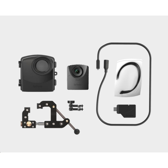 Sada stavební kamery Brinno BCC2000 Plus obsahuje časosběrnou kameru TLC2000, nástavec pro notebook nebo tablet, svorkový držák a vodotěsné pouzdro a baterii.