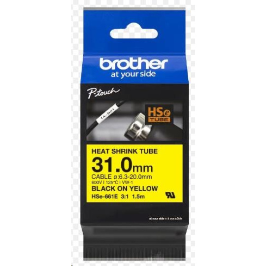 BROTHER smršťovací bužírka - HSE-661E žlutá pro D800 P900 P950 - 31mm / 6,3-20mm / 3:1