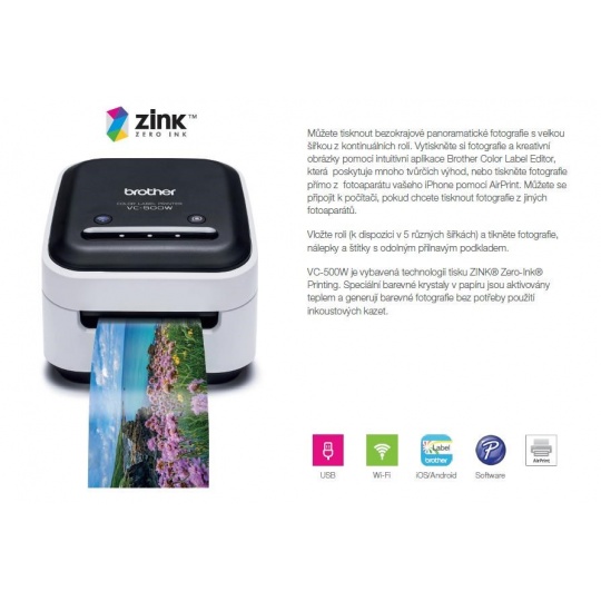 BROTHER tiskárna štítků FOTO - VC500W - WIFI, USB, COLOR bez potřeby inkoustu - Integrovaný odstřih