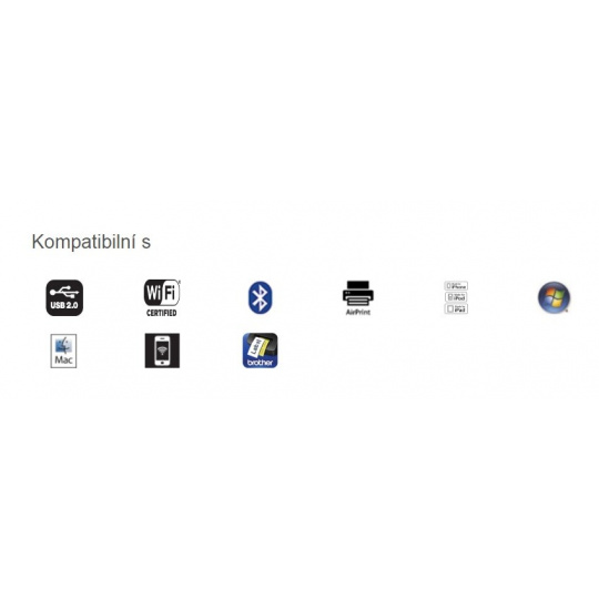 Symbolika jednorozměrného čárového kódu CODE39, CODE128, UCC/EAN-128(GS1-128), ITF(I-2/5), CODABAR(NW-7), UPC-A, UPC-E, EAN13(JAN13), EAN8, GS1 DataBar(RSS)(GS1 DataBar Omnidirectional,GS1 DataBar Truncated,GS1 DataBar Stacked,GS1 DataBar Stacked Omnidirectional,GS1 DataBar Limited,GS1 DataBar Expanded,GS1 DataBar Expanded Stacked) Symbolika dvourozměrného čárového kódu PDF417(Standard, Truncate, Micro), QR Code(Model 1, Model 2, Micro), Data Matrix (ECC200 Square, ECC200 Rectangular), MaxiCode, CODE93, POSTNET, UPC-E EXTENSION Black and red printing capability ano Bitmapové fonty Helsinki, Brussels, Letter Gothic Bold, San Diego, Brougham Maximální šířka štítku 62 mm Maximální šířka tisku 60.96 mm Fonty obrysů/vektorů Helsinki, Brussels, Letter Gothic Rozlišení (dpi) 300 x 300, 300 x 600 Standardní rychlost tisku 110 štítků za minutu Standardní rychlost tisku 176 mm za sekunduProgram pro navrhování štítků P-touch Editor