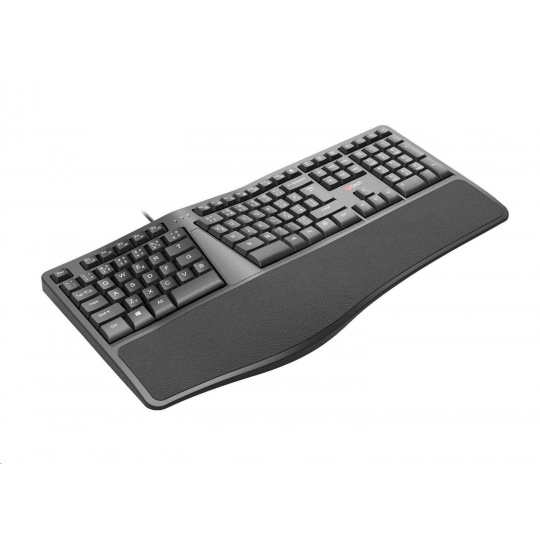 Ergonomická klávesnice C-TECH KB-113E byla navržena pro ty, kteří tráví prací mnoho hodin. Svým speciálním konstrukčním řešením a měkkou předložkou Vám tato klávesnice pomůže minimalizovat Vaši únavu při dlouhé práci. Pomáhá také podobně jako vertikální myš předejít, nebo zmírnit dopady onemocnění karpálního tunelu.