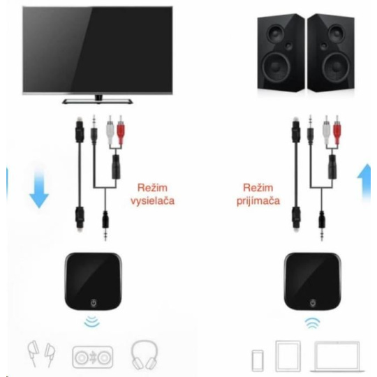 Tento vysílač a přijímač mini Bluetooth lze připojit k širokému okruhu zvukových zařízení, jako jsou MP3, MP4, TV, rádio, autorádio nebo počítač, a umožní jim připojení Bluetooth. Použitím optického zařízení Toslink / SPDIF nebo 3,5 mm audio kabelu vytvoříte několik zvukových zařízení s podporou Bluetooth. Bluetooth přijímá i vysílá, což znamená více možností použití.