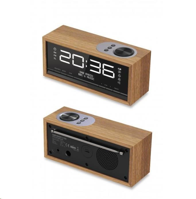 CARNEO C100, rádio DAB+, FM, BT, budík, OLED, wood