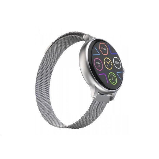 Luxusní fitness hodinky CARNEO HERO mini HR+ s Milánským, kovovým řemínkem s barevným Super HD AMOLED displejem. Monitorují vaši denní aktivitu, výšku stresu a lze je spárovat s mobilním telefonem, díky čemuž Vás upozorní na příchozí hovor či SMS. Jejich dokonalé, minimalistické kovové tělo s jednoduchými křivkami je tak návykové, že je nebudete chtít po prvním nošení sundat z ruky. Hodinky Vám umožňují vyřídit telefonický hovor přes zabudovaný mikrofon a reproduktor, pokud budete v dosahu spárovaného telefonu (vzdálenost až 10 metrů).