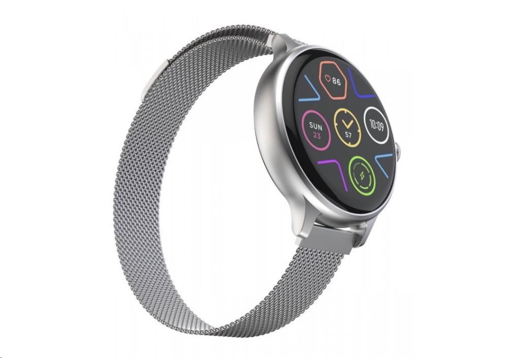 Luxusní fitness hodinky CARNEO HERO mini HR+ s Milánským, kovovým řemínkem s barevným Super HD AMOLED displejem. Monitorují vaši denní aktivitu, výšku stresu a lze je spárovat s mobilním telefonem, díky čemuž Vás upozorní na příchozí hovor či SMS. Jejich dokonalé, minimalistické kovové tělo s jednoduchými křivkami je tak návykové, že je nebudete chtít po prvním nošení sundat z ruky. Hodinky Vám umožňují vyřídit telefonický hovor přes zabudovaný mikrofon a reproduktor, pokud budete v dosahu spárovaného telefonu (vzdálenost až 10 metrů).