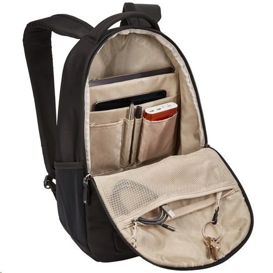 - Organizér umístěný v hlavním oddílu s různými možnostmi uložení drobné elektroniky, kabelů, příslušenství, vizitek a klíčů.