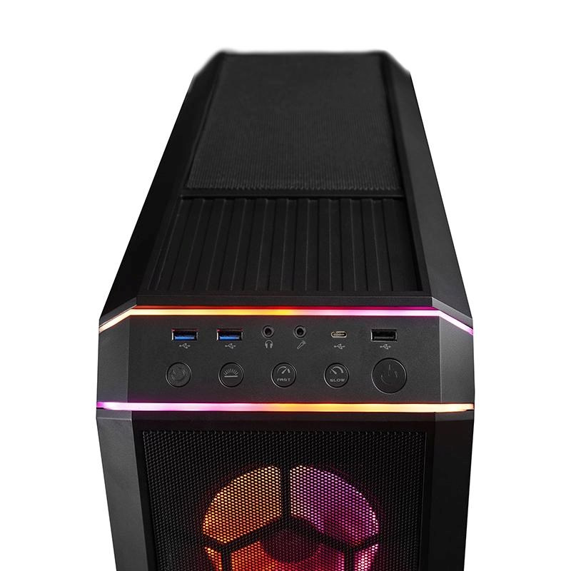 Prémiová herní skříň CHIEFTEC STALLION 3 je vybavena tvrzeným sklem na levé straně a předním panelu, což zlepšuje přehled o interiéru skříně a pozitivně odhaluje ventilátory RGB RING a další osvětlovací komponenty.