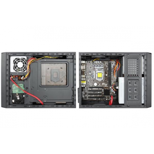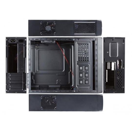 Integrovaný zdroj; Provedení skříně:Mini Tower / micro ATX; Barva skříně:Černá; Počet pozic 5.25":1; Počet pozic 3.5" (HDD):3; Počet pozic 2.5" (SSD):2.... více