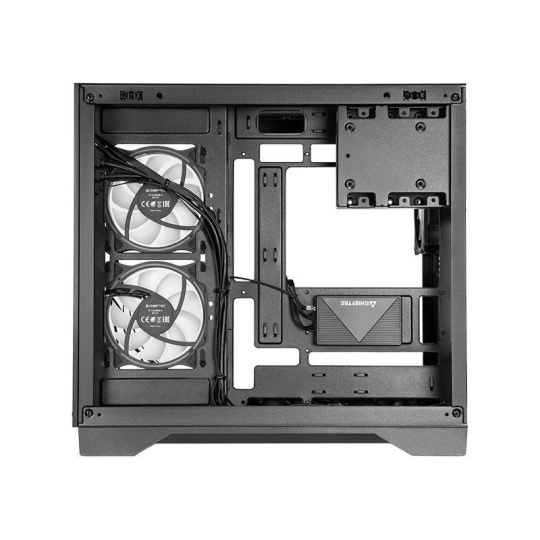 CHIEFTEC Visio má panely z tvrzeného skla na levé i přední straně a dvoukomorové uspořádání pro nejnovější základní desky s připojením zezadu (kompatibilní s ASUS BTF a MSI Project Zero). Tato konstrukce zjednodušuje správu kabelů a zajišťuje čistý výhled do interiéru a nerušené proudění vzduchu.