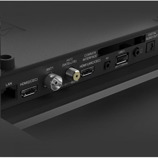 | Vstupy a výstupy | AV vstup mini, CI+, sluchátkový vstup 3.5 mm, digitální audio výstup, HDMI 1.4, USB 2.0, LAN, antény RF a LNB |
