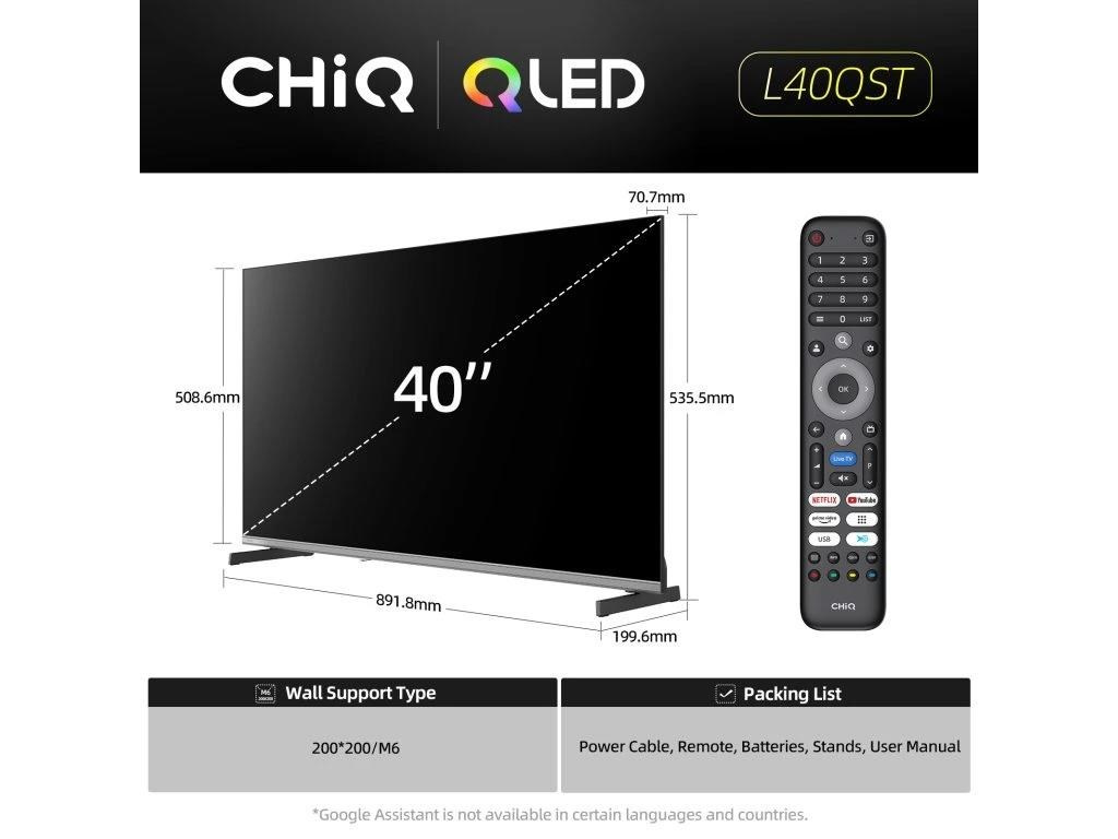 CHiQ 40“ L40QST, ultratenká bezrámečková Smart QLED Google TV, HDR10, obrazovka Full HD s rozlišením 1920 x 1080 pixelů
