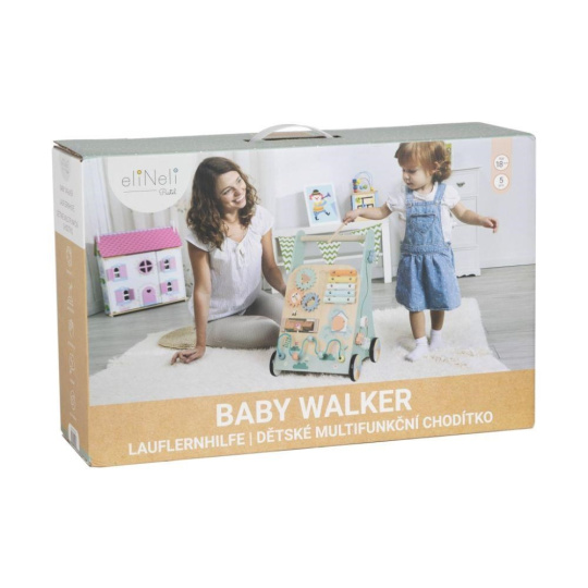 Krásné multifunkční chodítko pro děti s xylofonem nadchne každého svým zpracováním, pastelovými barvami a spoustou možností ke hře i vzdělávání. Chodítko pomůže dětem se samostatnou chůzí, zabaví je svými hracími prvky, zdokonalí jejich dovednosti. Boční strany chodítka jsou vkládačkou a dráhou s autíčky, přední strana dětem nabízí barevné kolečka, korálky, dvířka k prozkoumání, i barevný xylofon..