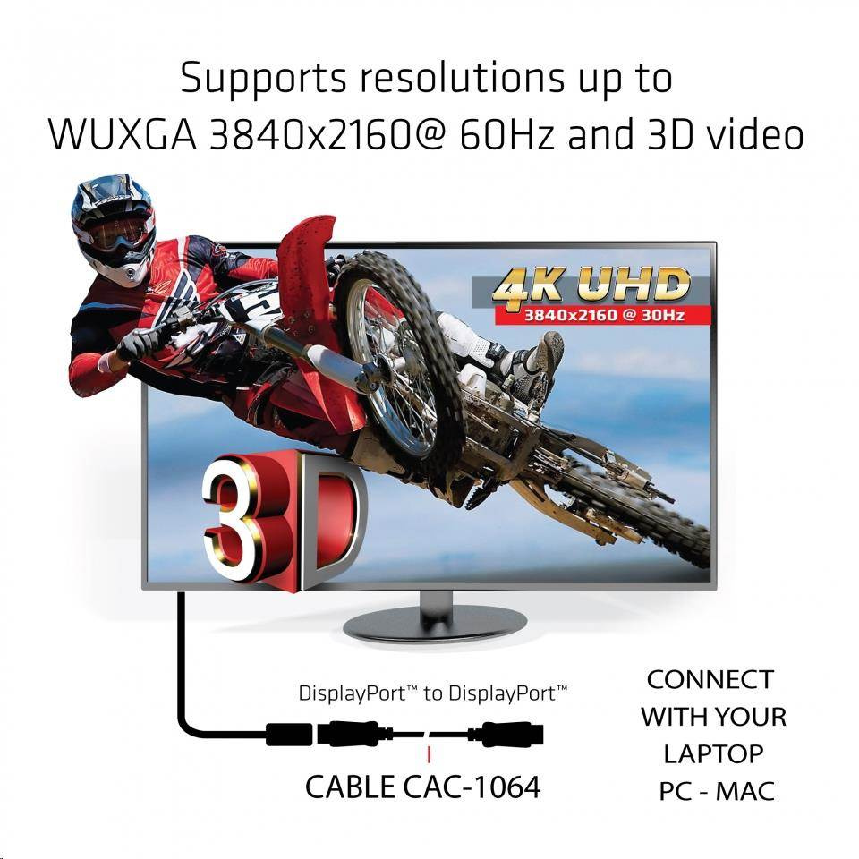 Club3D Kabel certifikovaný DisplayPort 1.2, 4K60Hz UHD (M/M), 3m, 30 AWG