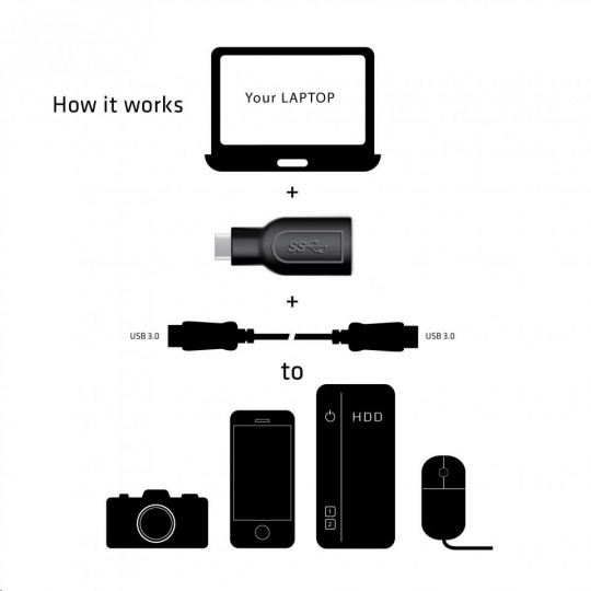 • Připojte zařízení typu USB typu A k notebookům, tabletům a ultrabookům s rozhraním USB 3.1 typu C.