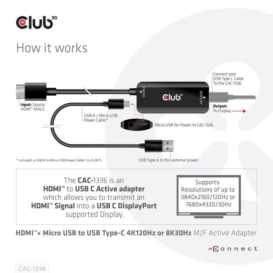 Club3D Adaptér HDMI + Micro USB na USB-C 4K120Hz/8K30Hz, Active Adapter M/F