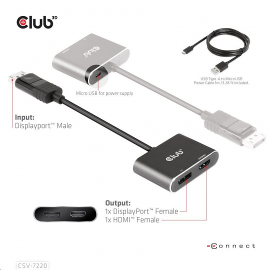 | In the box | - CSV-7220, MST hub DisplayPort™ 1.4 to DisplayPort™ + HDMI™ 4K60Hz M/F - USB Type-A to Micro USB Power Cable 1m /3.28 ft |