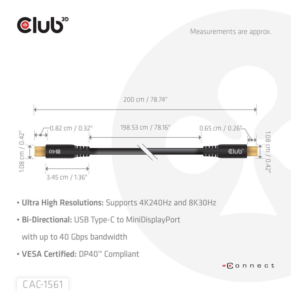 Club3D Kabel USB-C na MiniDisplayPort 2.1, 8K30Hz, DSC1.2, UHBR10, 2m