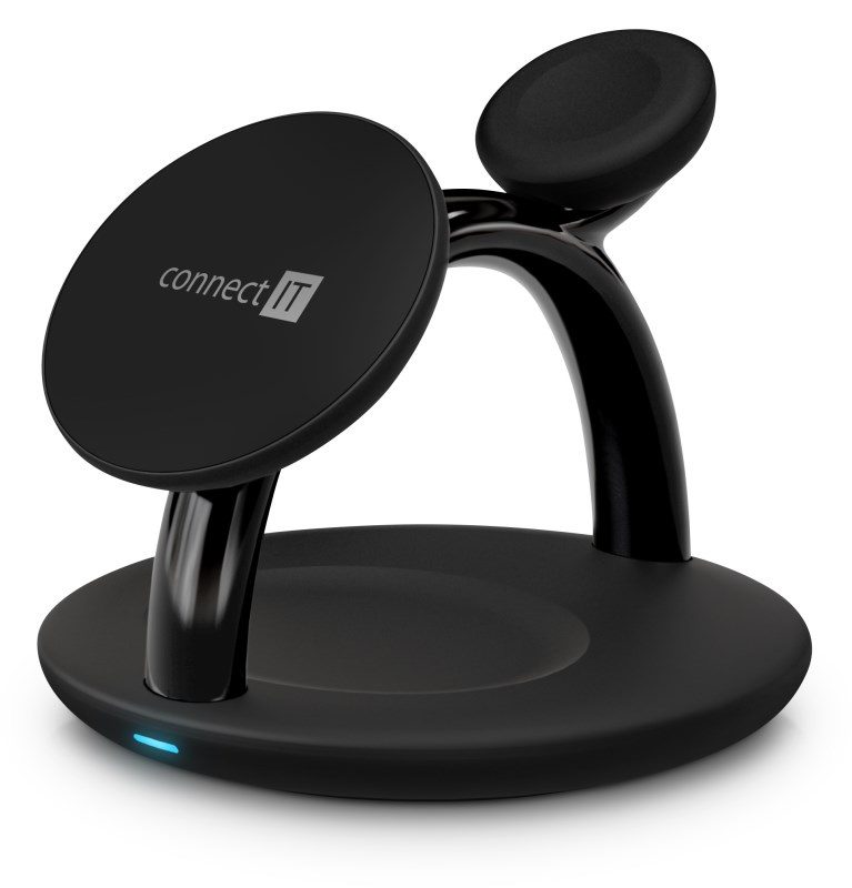 CONNECT IT Bezdrátová nabíječka 3v1 MultiCharge MagSafe pro IPhone, Apple Watch a AirPods, 15 W, Černá