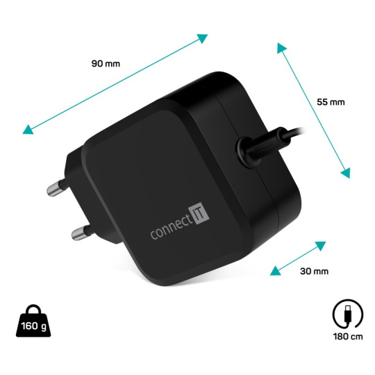 CONNECT IT C-Power Mini univerzální notebookový adaptér USB-C, PD 67 W, černá