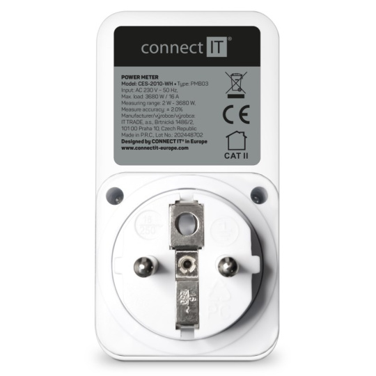 Connect It PowerMeterDigitální měřič CONNECT IT "PowerMeter" s jednoduchým designem slouží k měření spotřeby elektrické energie různých domácích spotřebičů. Měřič disponuje velkým LED displejem a jednoduchým ovládáním. Díky tomu je velmi přehledný a spolehlivý.Měřič spotřeby elektrické energie dokáže vypočítat odpovída... více