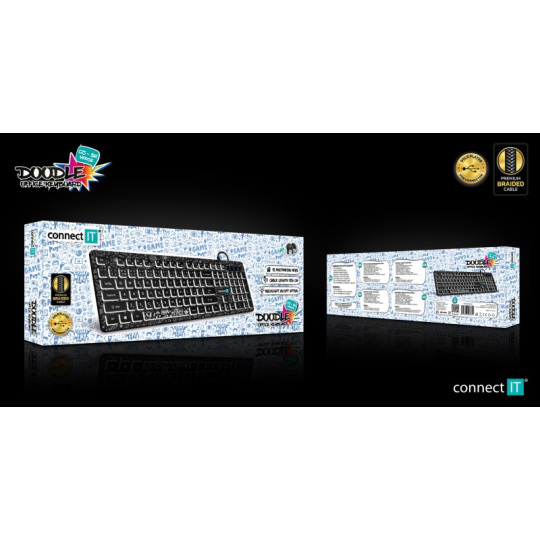 Podsvícená klávesnice s unikátním DOODLE motivem, určena pro domácí použití i pro vysoko zátěžové profesionální použití v kancelářích a firmách.