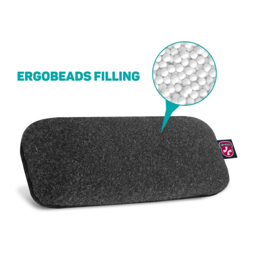 Zápěstní opěrka před myš plněná kuličkami ErgoBeads, díky kterým se opěrka vytvaruje a přizpůsobí každému zápěstí a zajistí tak celodenní komfort při práci na PC.
