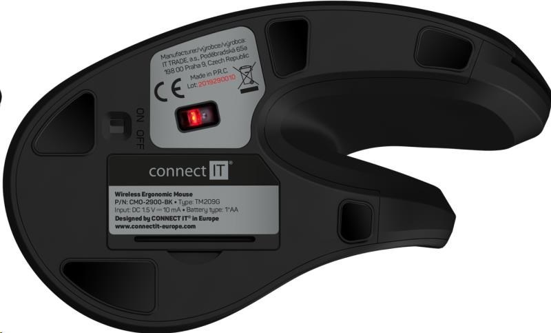 CONNECT IT FOR HEALTH ergonomická vertikální myš (+ 1x AA baterie zdarma) bezdrátová, černá