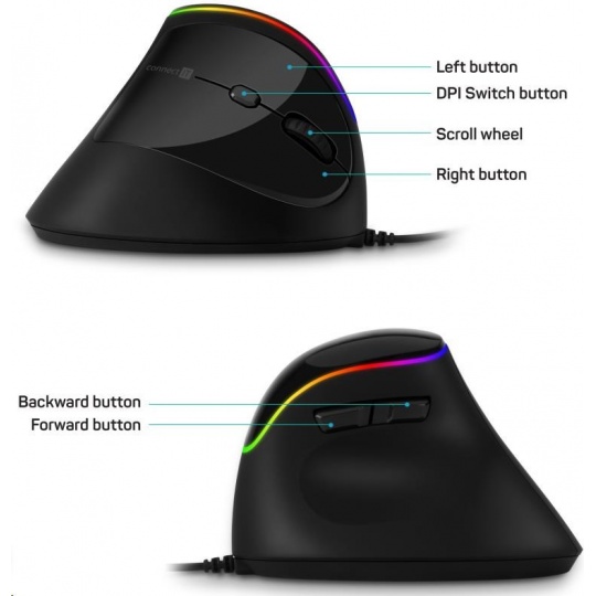 CONNECT IT GAME FOR HEALTH ergonomická vertikální myš, drátová, černá