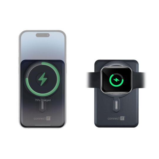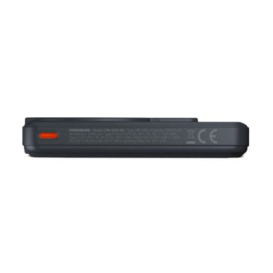 Bezdrátová MagSafe powerbanka s kapacitou 10000 mAh kompatibilní s Apple iPhone a Apple Watch. Disponuje integrovaným USB-C a Lightning kabelem. Podporuje až 20 W rychlonabíjení pomocí USB-C kabelu.
