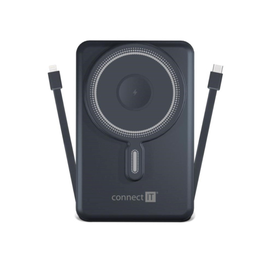 CONNECT IT Powerbanka TravelCharge, MagSafe, 10000mAh, USB-C, Lightning, Šedá