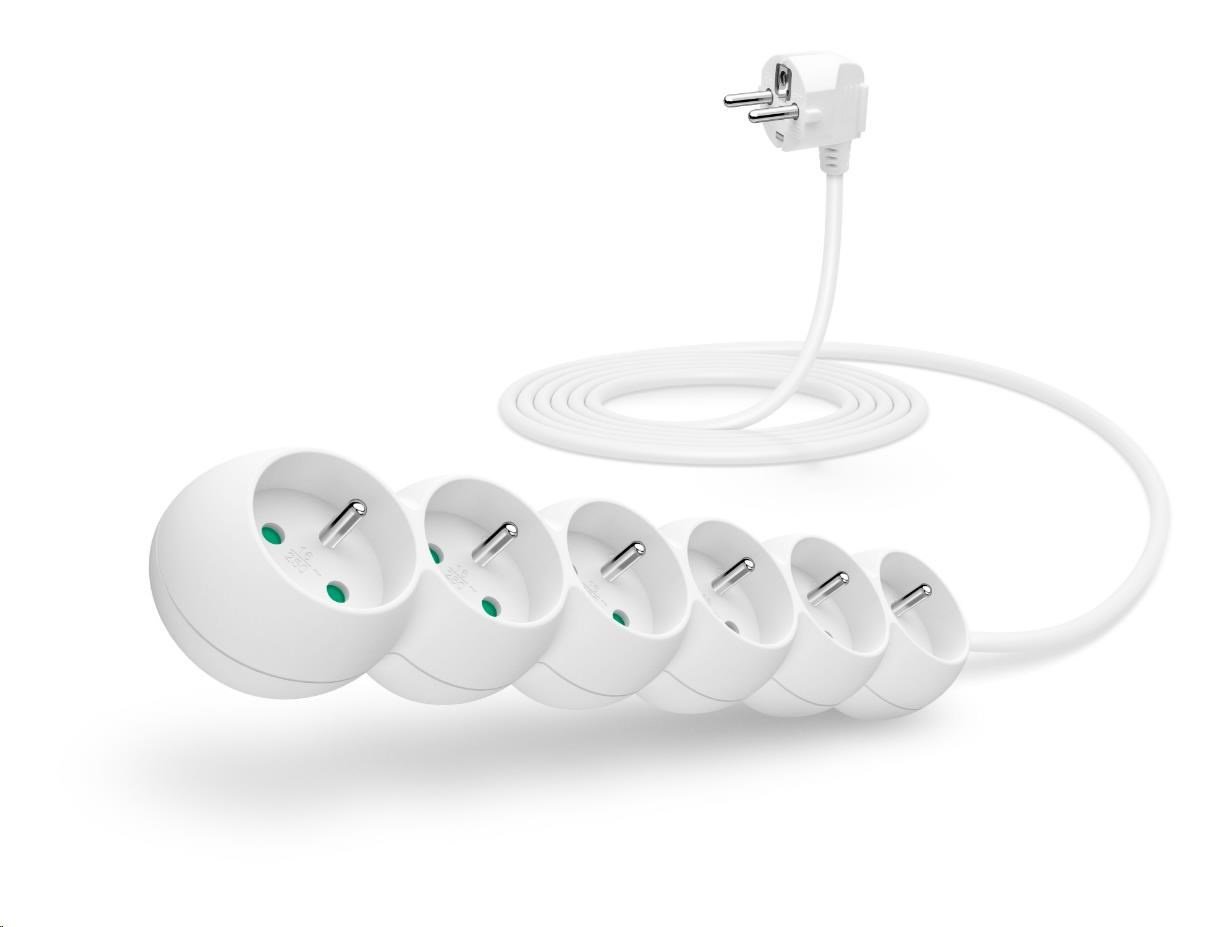 CONNECT IT prodlužovací kabel 230V, 6 zásuvek, 3 m, bez vypínače (bílý)