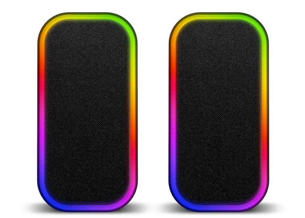 Reproduktory jsou vybaveny RGB Rainbow podsvícením a ovládáním hlasitosti/podsvícení/vstupu na kabelu.