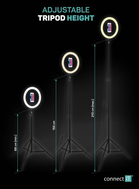 CONNECT IT Selfie12Ring kruhové 12" LED světlo + stativ 2,1 m