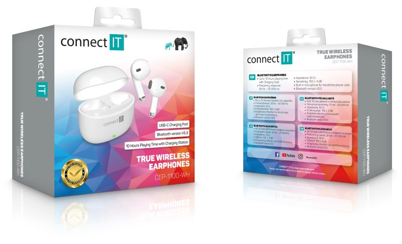 CONNECT IT Sluchátka True Wireless SonicBass, špunty do uší s mikrofonem, Bluetooth, bílá