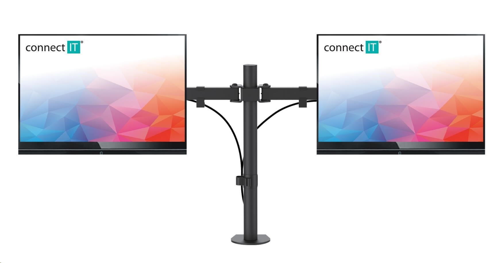 CONNECT IT TwinArm stolní držák na 2 monitory, ČERNÝ