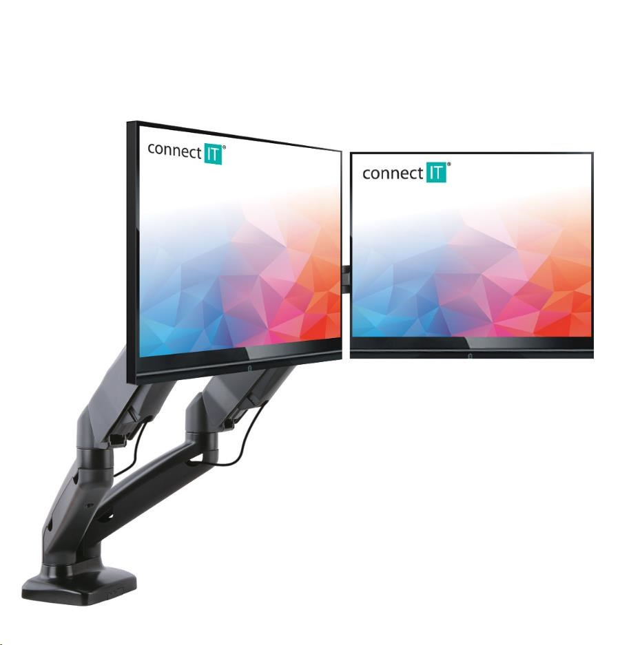 CONNECT IT TwinArm stolní držák na 2 monitory, záruka 30 let, ČERNÝ