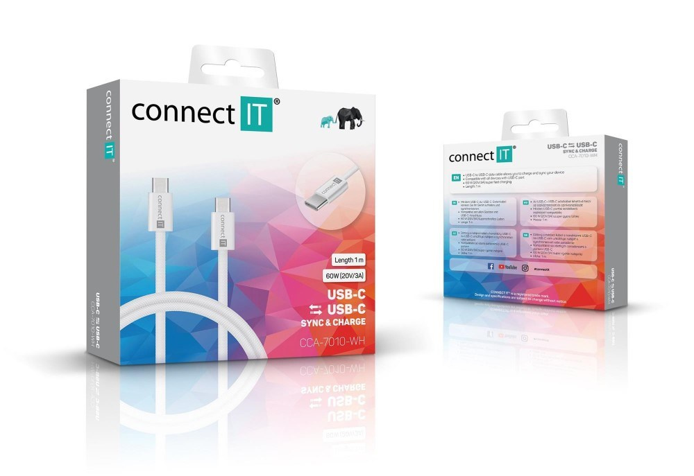 CONNECT IT Wirez USB-C -> USB-C, 60 W, 1m, bílá