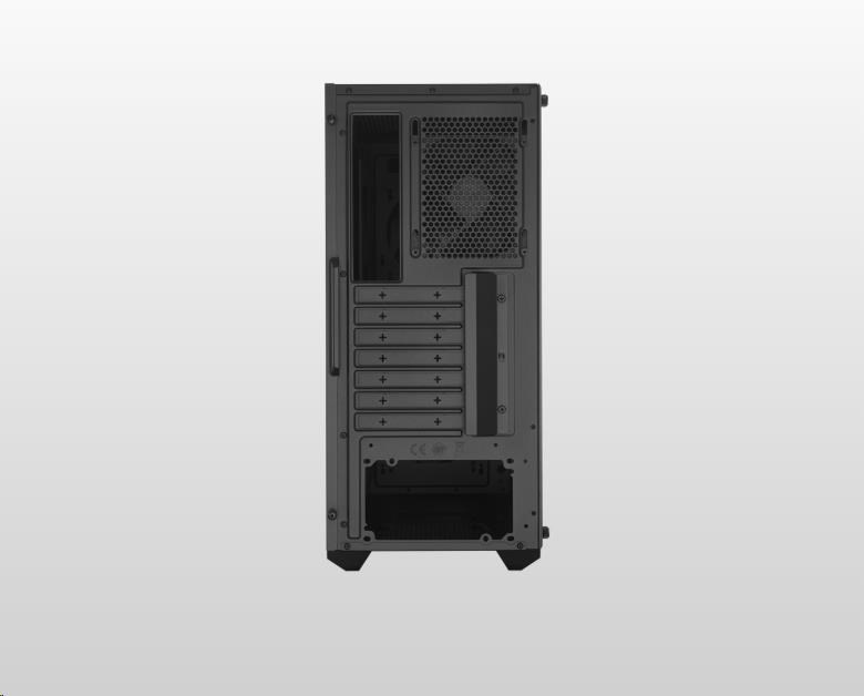 Základem nového MasterBoxu K501L je hraní her. Osvětlený ventilátor na pozadí šikmého větrání předního panelu vypovídá o jeho soutěživé stránce.