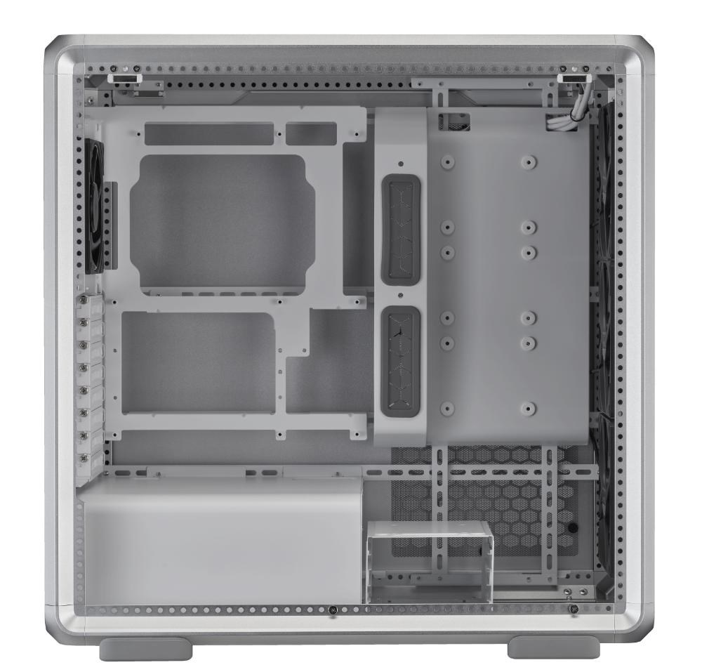 MasterFrame 600 je vlajkovou lodí řady skříní ATX s rozměry 544 x 531 x 261 mm. Nabízí všestranný, prostorný design, který podporuje standardní základní desky ATX, s dostatkem prostoru pro rozšíření, chlazení a efektivní správu kabelů.