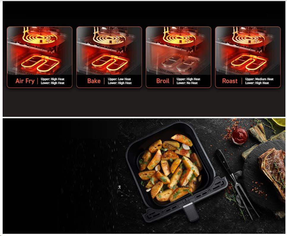 S horkovzdušnou fritézou COSORI CAF-P583S SMART si můžete užít vaše oblíbená smažená jídla bez výčitek, protože na rozdíl od běžného smažení nebo fritování je v této horkovzdušné fritéze možné připravovat jídla za použití velice malého množství oleje nebo vůbec žádného. Patentovaná technologie THERMO IQ 360° HEAT CIRCULATION přesně reguluje teplotu inteligentním teplotním algoritmem a zajišťuje tak rovnoměrně uvařené jídlo bez nutnosti jeho protřepání nebo překlápění. Kombinace cirkulujícího horkého vzduchu, dokonalé teploty vaření a chytrých programů zajistí, že hranolky budou vždy krásně křupavé a kuřecí stehna šťavnatá. Programy si můžete rychle a pohodlně nastavit také přes smartphone nebo Amazon Alexa a Google Assistant. Až budete mít hotovo, čištění bude stejně snadné díky nepřilnavému koši, který lze mýt v myčce. Díky veliké nádobě s objemem 6,4l navíc dokážete rychle navařit i pro větší rodinu nebo skupinu hostů.