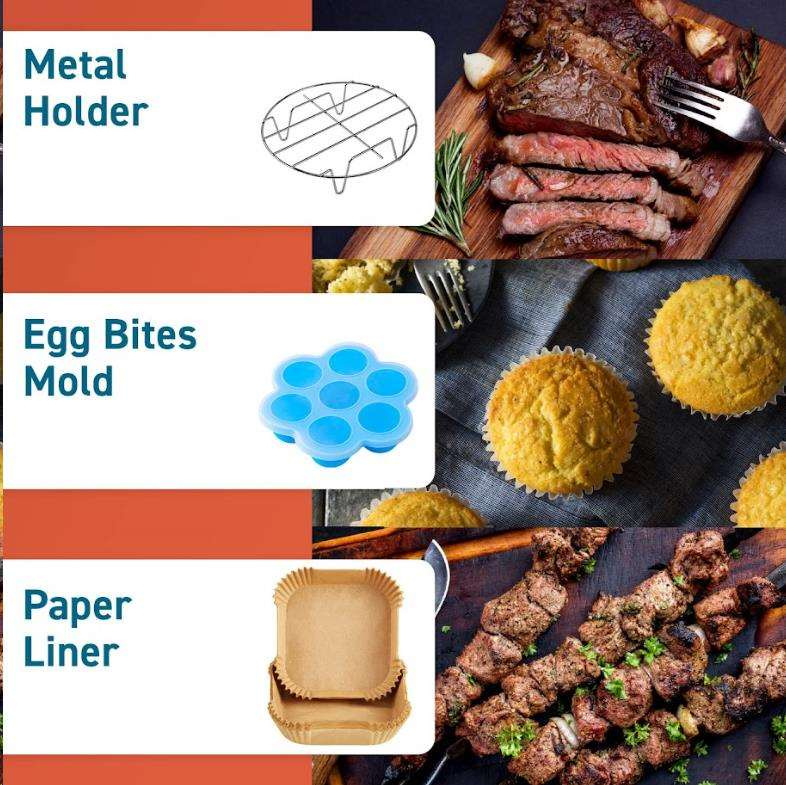 Tuto sadu příslušenství Cosori lze skvěle kombinovat i s jinými horkovzdušnými fritézami s objemem nad 5,5 litru.