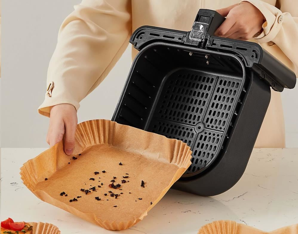 Čtvercové jednorázové pečicí papíry pro horkovzdušnou fritézu jsou koncipovány tak, aby odpovídaly tvaru koše fritézy, takže je nemusíte trhat ani stříhat. Když jste připraveni k vaření, jednoduše je vložte do koše.