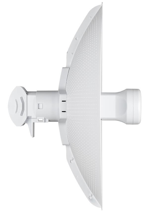 Venkovní Wi-Fi přístupový bod D-Link DAP-3712 s parabolickou 23 dBi směrovou anténou poskytuje spolehlivé řešení pro venkovní bezdrátové sítě. Pracuje v pásmu 5GHz s maximální rychlostí až 867 Mb/s (802.11ac 2x2). Lze provozovat v režimech přístupový bod (Access Point, AP), bezdrátový klient nebo v režimech WDS AP a WDS klient pro vytvoření bridge spojů v topologiích bod-bod (Point-to-Point, PtP) nebo bod-multibod (Point-to-Multipoint, PtMP) na vzdálenost až 20km. Je navržen především pro poskytovatele bezdrátového internetu (Wireless ISP), kterým umožňuje rychlou a cenově efektivní distribuci internetu pro připojení zákazníků. Specifikace: • Wi-Fi 5 single-band 5 GHz, 802.11a/n/ac 2x2, max. 867 Mb/s • 1x 100/1000 Mb/s RJ-45 port • LED indikace: síla signálu • Parabolická směrová anténa 23 dBi, vyzařovací úhel 10° H, 10° V • Provozní režimy: access point, wireless client (station), WDS AP, WDS klient • Bridge topologie bod-bod nebo bod-multibod, dosah až 20km • Maximální vysílací výkon 27 dBm, možnost nastavení vysílacího výkonu • Provozní pásma: 5180~5320 MHz, 5745~5825 MHz, šířka pásma 20/40/80 MHz • Podpora TDMA technologie • Wi-Fi šifrování 802.11i 128-bit AES Personal / Enterprise • Správa: webové rozhraní • 1x SSID, možnost skrýt vysílání SSID • SSID VLAN, Management VLAN • Funkce: izolace klientů, omezení rychlosti, omezení max. počtu klientů • QoS: Traffic Shaping, QoS Priority, WMM, IP Filter, MAC filter • Provedení ABS plast, stupeň krytí IP66 • Provozní teploty od -40°C do +65°C • Napájení: aktivní PoE+ dle 802.3at, 48V PoE injektor součástí dodávky • Max. spotřeba 15W • 8 kV ESD přepěťová ochrana • Hmotnost: 900g • Rozměry: 372 x 372 x 241 mm.
